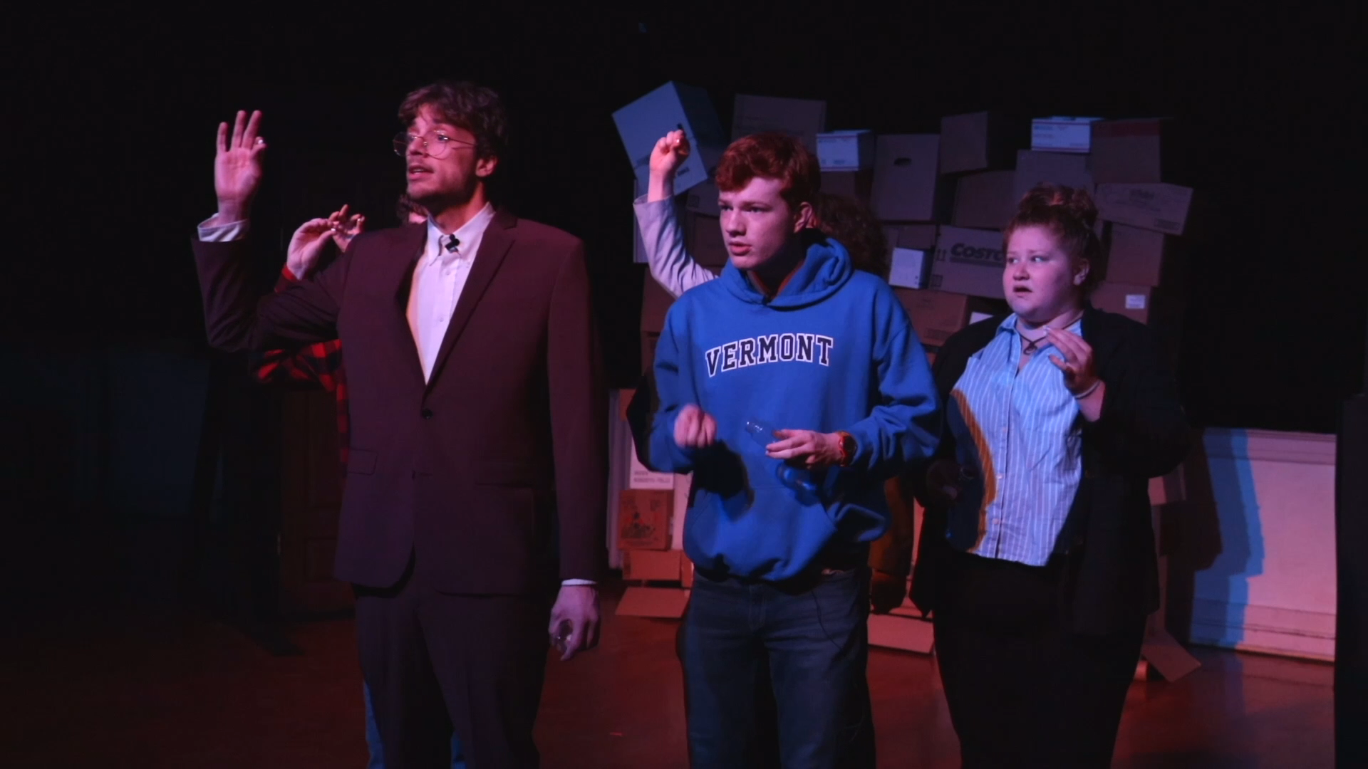 Meanwhile, MindShare users start to notice changes in their psychology (“Something’s Wrong”). Amidst this societal uncertainty, Lucy expresses fears about fitting in with real people and finding something she feels passionate about. She soon meets a group of eccentric friends – Pat, Paul, and brothers Brian and Bohort – who reassure her on these matters (“Before You Know It”). They tell Lucy that they’re the leaders of the MindShare Oppositional Action Network (known as M.O.A.N.) and invite Lucy to their next meeting. Bolstered by their friendliness, she agrees (“Before You Know It (Reprise)”).